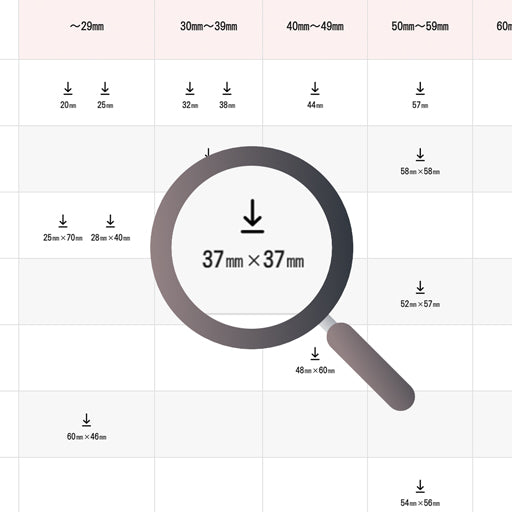 | 〜29mm | 30mm〜39mm | 40mm〜49mm | 50mm〜59mm | 60mm〜69mm | 70mm〜 | |